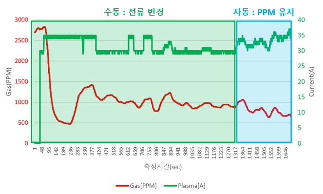 자동으로 설정 PPM에 따른 Gas 변화 및 에너지 절감 확인