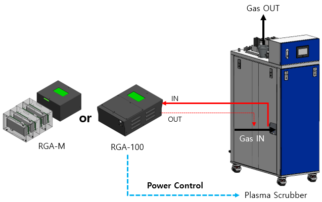 RGA-200을 이용하여 Plasma Scrubber IN/OUT 동시 측정