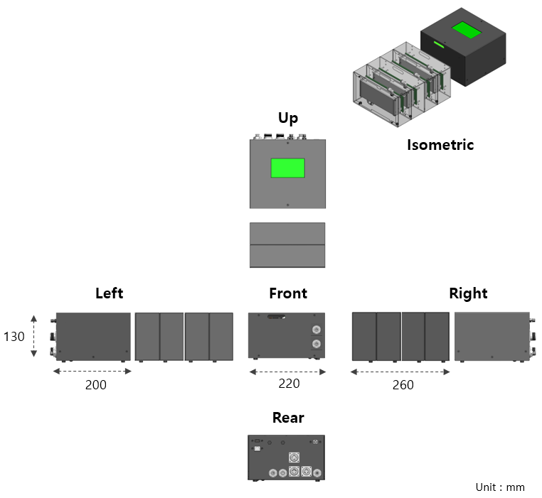 Gas Sensor : ND-IR 4개(사용자 선택), 직렬 측정