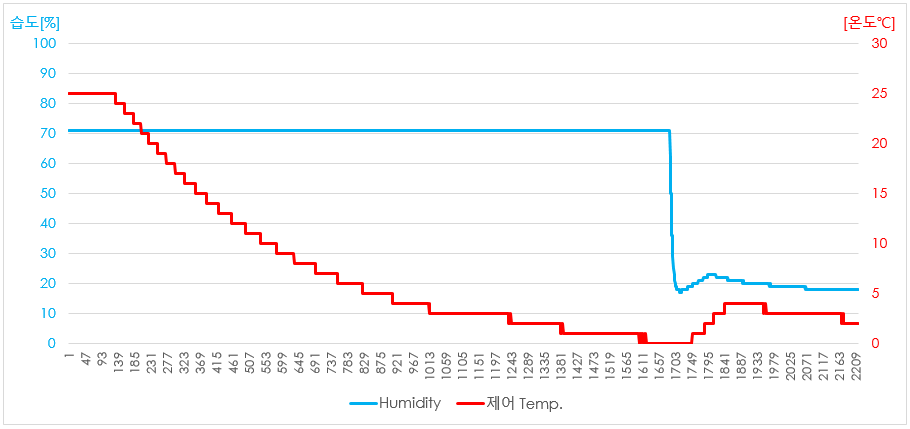냉각 설정 온도 도달 시간 : 약 1611초(26분 소요)