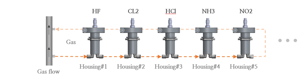한개 Port에서 들어오는 Gas를 여러 센서로 동시 측정