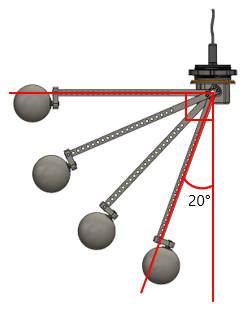 출력 신호 : 4~20mA(20º~90º), ±0.5mA(4.5~19.5mA 사이에서 사용하는 것을 권장)