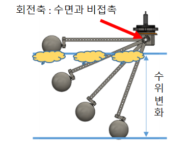 A. 회전축이 수면과 비 접촉 구조로 수중의 부유물 등 이물질에 의한 오동작 방지 가능