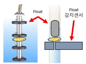상시 담수 구간에 지지물 또는 튜브 내부에 부유물, 점액질 고착 시 Float 이동이 불가능하여 오동작 발생