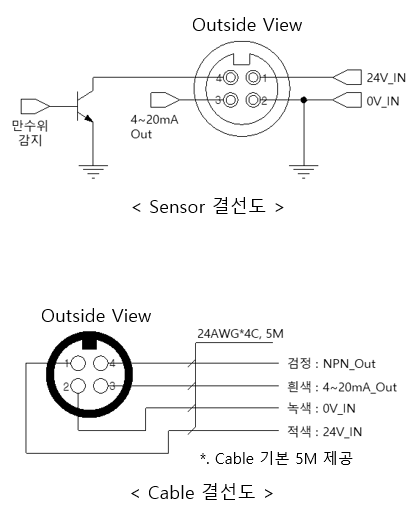 측정 된 수위를 아날로그 전류 신호로 출력하며, PLC 등의 신호 수신 장치를 이용하여 수위를 관측하고 제어