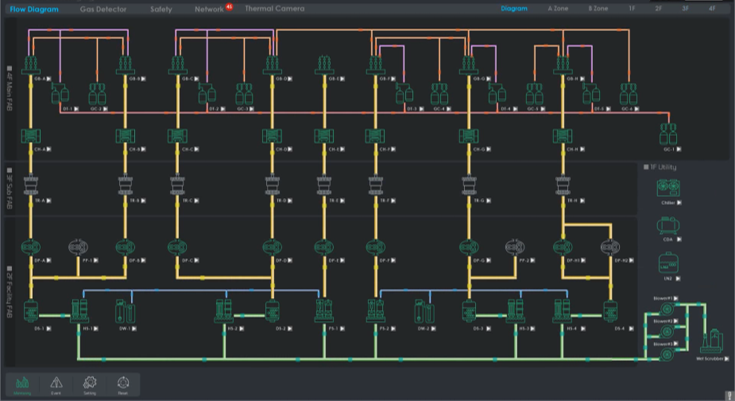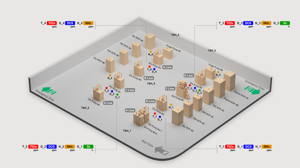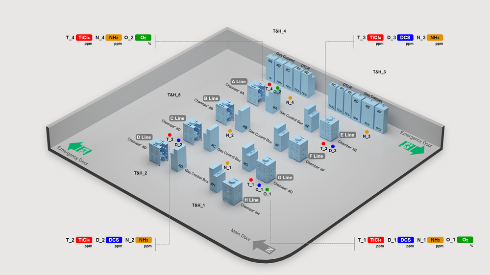 FAB 또는 작업장의 진입 전 현장 상태(Gas Detector, Temp. , Hum등)를 확인 후 입실이 가능하도록 구성되며