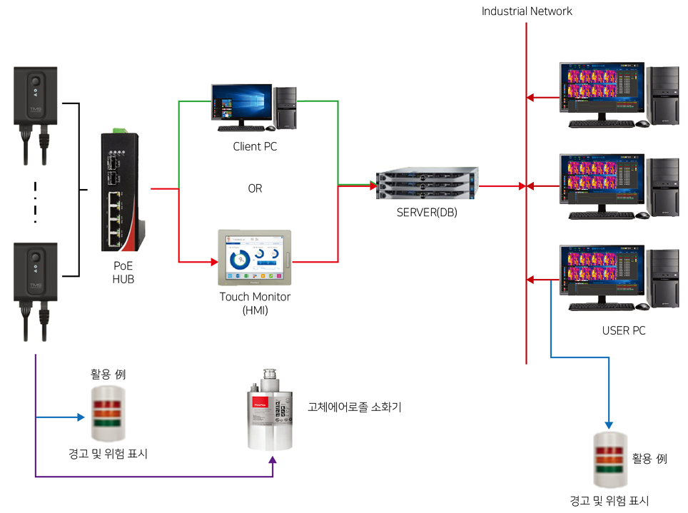 온도 센서, 연기감지기, 가스 감지기등 화재가 발생되기 전 사전 감지를 통해 화재가 발생되지 않도록 개발 됨