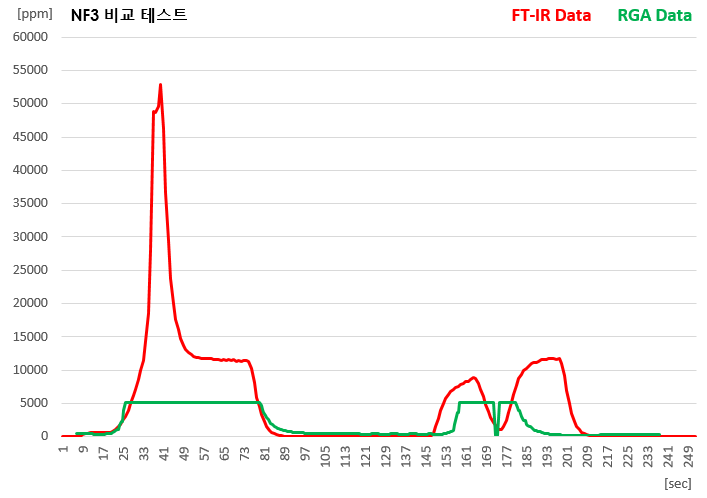 ■ NF3 "FT-IR : RGA" 비교 측정 * NF3 ND-IR Range 0 ~ 5,000ppm
